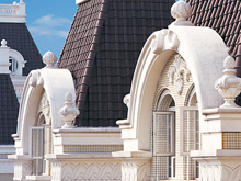 引進(jìn)外部智力,招賢納才,高薪聘請國內(nèi)資深歐 式建筑設(shè)計專家擔(dān)任企業(yè)技術(shù)顧問,并聘用國內(nèi) 優(yōu)秀設(shè)計師組建設(shè)計團體。在建筑設(shè)計中,設(shè)計 師把握仿真石能任意造型的特點,將建筑的功能 化、藝術(shù)化、人格化和個性化得以充分展現(xiàn),體 現(xiàn)了現(xiàn)代建筑高貴、典雅的風(fēng)格,讓觀者領(lǐng)略了 不同凡響的品味和悠遠(yuǎn)的歐洲文化。